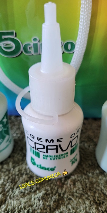 1- Amolecedor de Cutícula – Creme de Cravo – é cremoso, leitoso e transparente na aplicação. A essência é suave e, além de amolecer, cuida trata e hidrata as cutículas. Cumpre as indicações de maneira privilegiada.