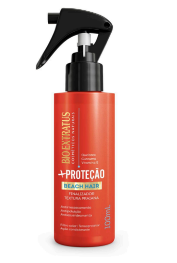 ● Spray Beach Hair – protege e cria uma textura do tipo “ondulado de praia”. Com filtro solar, termoprotetor e ação condicionante, pode ser usado antes, durante e depois do sol, da piscina e da praia. pH 3,5. Frasco de 100ml.