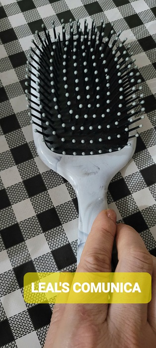 Posso falar com experiência de tê-la em mãos, a Escova Marble da ProArt Professional é linda! Com um design sofisticado já que foi inspirado no luxo e glamour dos mármores encontrados pelo mundo, com um cabo curto, porém suficientemente confortável, se adequa perfeitamente na mão, o que ajuda para o desembaraço dos fios, já as cerdas tem pontas protegidas que massageiam o couro cabeludo tranquilamente. Um verdadeiro carinho para você e para os seus cabelos!