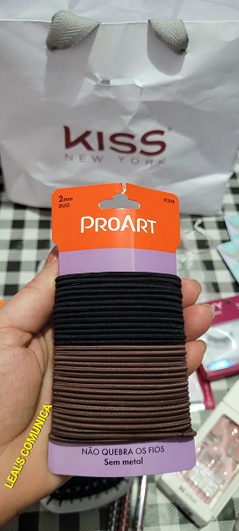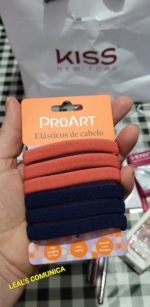 Além disso, recebi 2 kits de elásticos de prender os cabelos, sem metal, o que ajusta ao penteado com firmeza e sem quebrar os fios. Útil, dinâmico e prático.