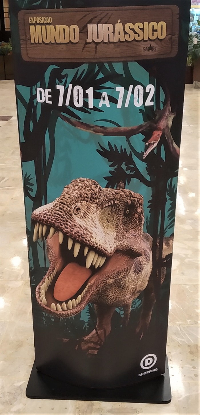 A “Exposição Mundo Jurássico” que se iniciou em 7 de janeiro, vai até o dia 7 de fevereiro de 2021. Os Dinossauros estão espalhados por todo o shopping, entre o térreo, o piso 1 e o piso 2. Para encontrá-los há pisadas, ou seja, grandes patas espalhadas no caminho até chegar ao dino exposto.