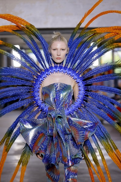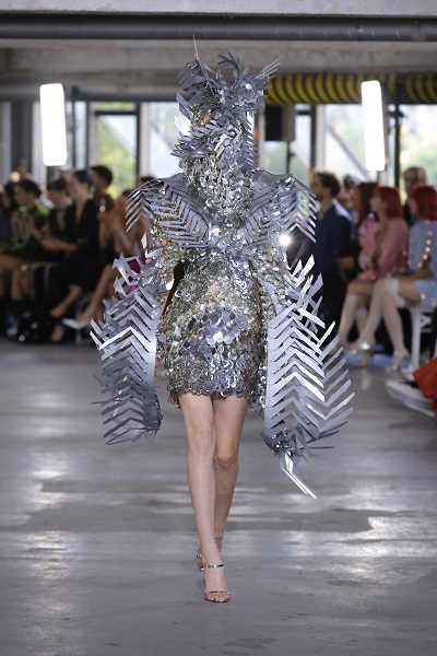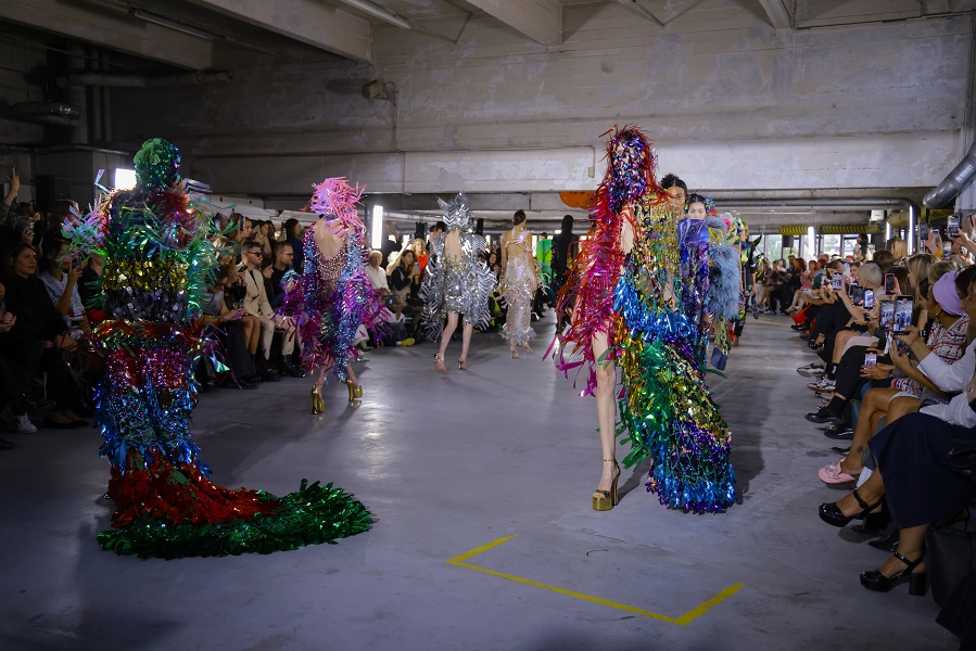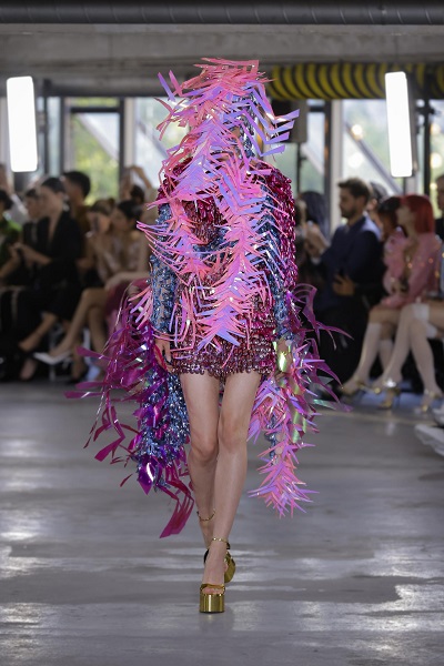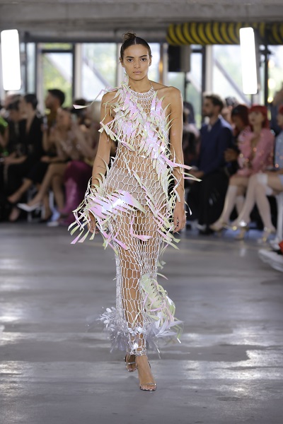 A moda sustentável segue fazendo parte da essência da Germanier, com o uso de materiais não convencionais que criam efeitos belíssimos e surpreendentes. As peças são feitas com tecidos reaproveitados, lantejoulas, cristais Swarovski e materiais reciclados, bordadas à mão. Sobre a coleção apresentada na PFW, Germanier explica que oferece uma gama diversificada de silhuetas, desde elegantes e estruturadas até volumosas e fluidas. Ela convida os entusiastas da moda a abraçar sua força interior e sensualidade com peças que dão poder e inspiram. “Os looks feitos em colaboração com Gustavo Silvestre refletem um trabalho artesanal e artístico meticuloso, destacando a dedicação da marca ao luxo e à individualidade”, pondera Germanier.