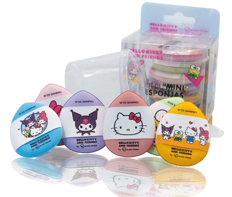A outra novidade é a coleção Hello Kitty and Friends by Klass Vough, que estreia com 11 itens inéditos trazendo personagens como My Melody, Kuromi e Keroppi para o universo da beleza, incluindo pincéis, esponjas colecionáveis, massageadores faciais e nécessaires.