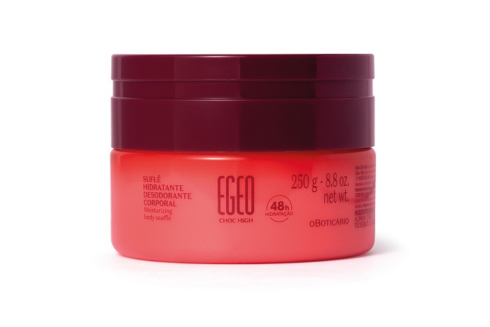 O portfólio da novidade aposta em um momento de autocuidado completo e divertido, considerando o destaque para a fragrância Egeo Choc High Desodorante Colônia e o Egeo Choc High Suflê Hidratante Desodorante Corporal – com textura leve e que seca rápido, alta perfumação e hidratação por até 48 horas.