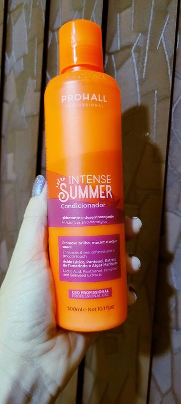 De uma maneira geral, já sou fã e apaixonada pela PROHALL e agora também, pela minha linha Intense Summer. O que deixou os meus cabelos maleáveis, cheirosos, leves, sedosos e cheios de movimento.