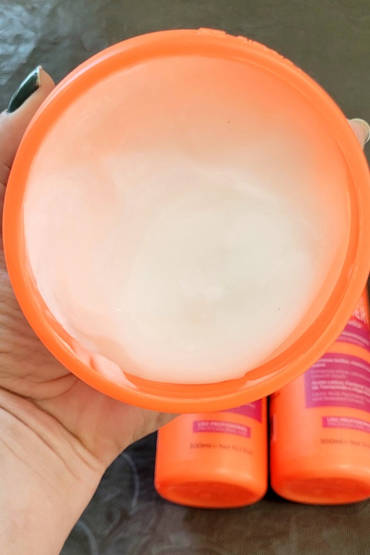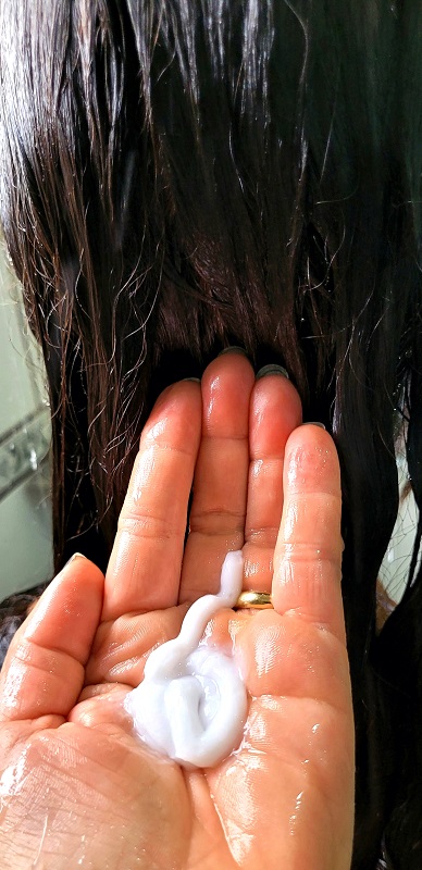 O condicionador tem uma textura cremosa e densa, bem incorporada. Enluvei os meus cabelos e o resultado foi de uma maciez e brilho intenso. Com os mesmos ativos do shampoo e também incluso o ácido lático; o que possibilitou deslizar as mãos nos meus cabelos e a minha reação foi surpreendente: de cabelos sem frizz, soltos e cheios de balanço.