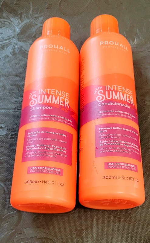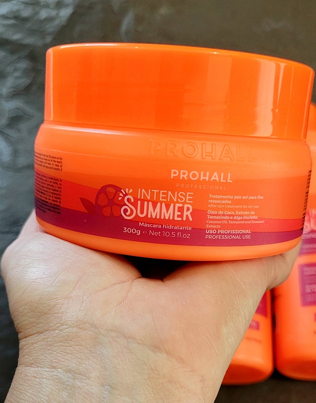 A linha Intense Summer da PROHALL Professional foi desenvolvida para o tratamento intensivo e a proteção diária contra os agentes externos aos fios. Lançada na Beauty Fair 2025, especialmente como indicação da restauração dos cabelos no verão, a estação mais quente do ano, com muitas agressões do clima que afetam os fios, desde a água das piscinas, das praias, o sol, o vento, o cloro, o sal, a poluição, entre outras.