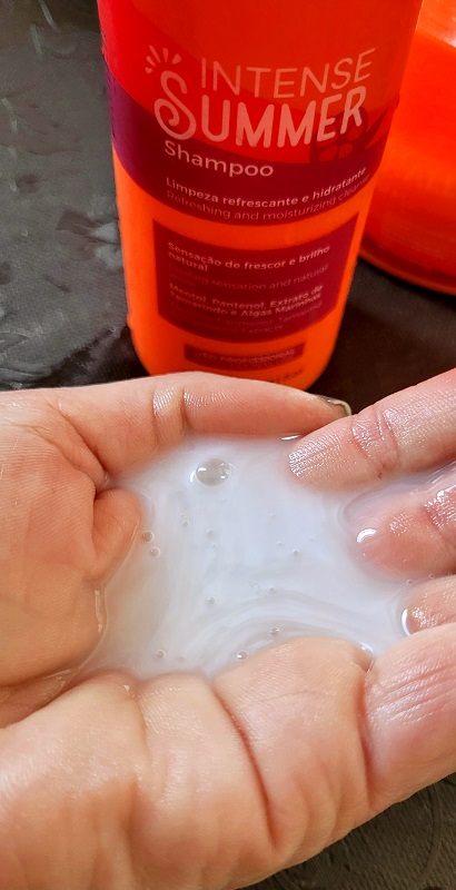 O shampoo tem uma textura branca espelhada e cremosa, espalha facilmente sobre os fios e em pouca quantidade. É notável até pelo toque, um shampoo hidratante que cuida dos fios com a naturalidade dos princípios ativos, bem como: mentol, pantenol, extrato de tamarindo e algas marinhas. O perfume é enriquecedor de bommmmm!