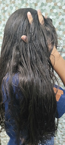 O resultado final foi de cabelos com ondas poderosas e longas, uma aparência agradável, com cheiro suave e fios desembaraçados.