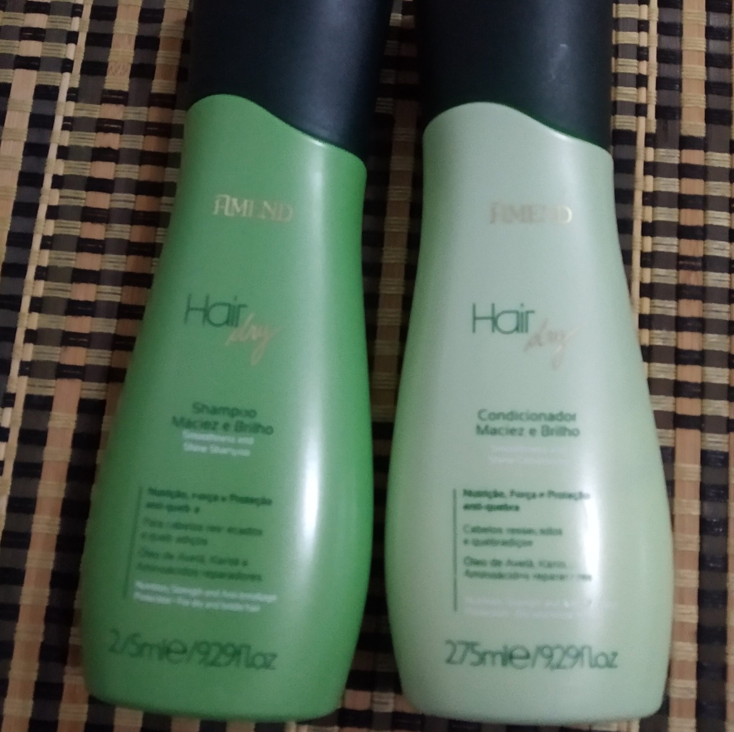 Já o condicionador maciez e brilho Hair Dry Amend (275 ml) recupera a hidratação perdida já que possui aminoácidos reparadores, o que deixa os fios reparados e fortalecidos dia após dia.
